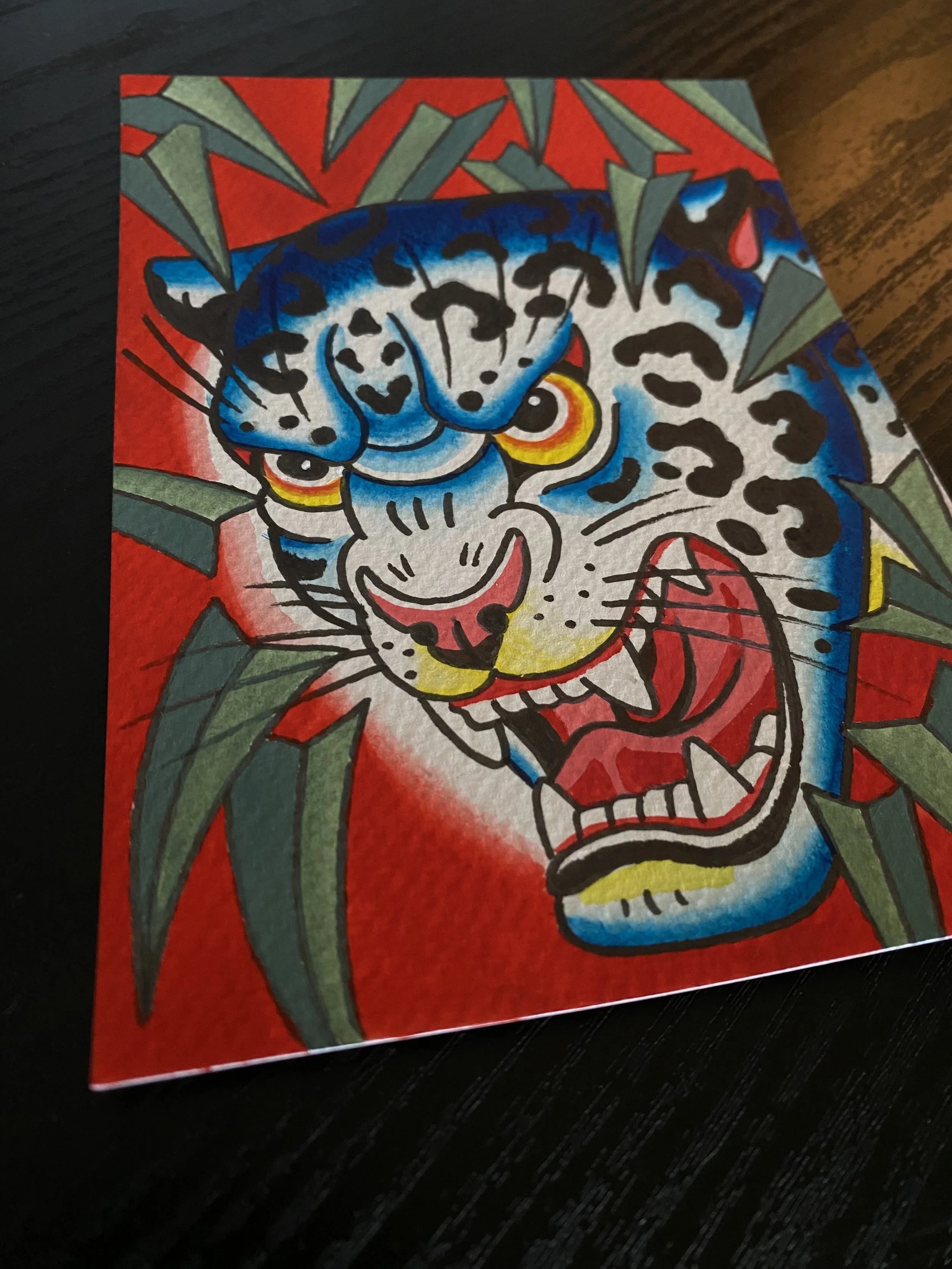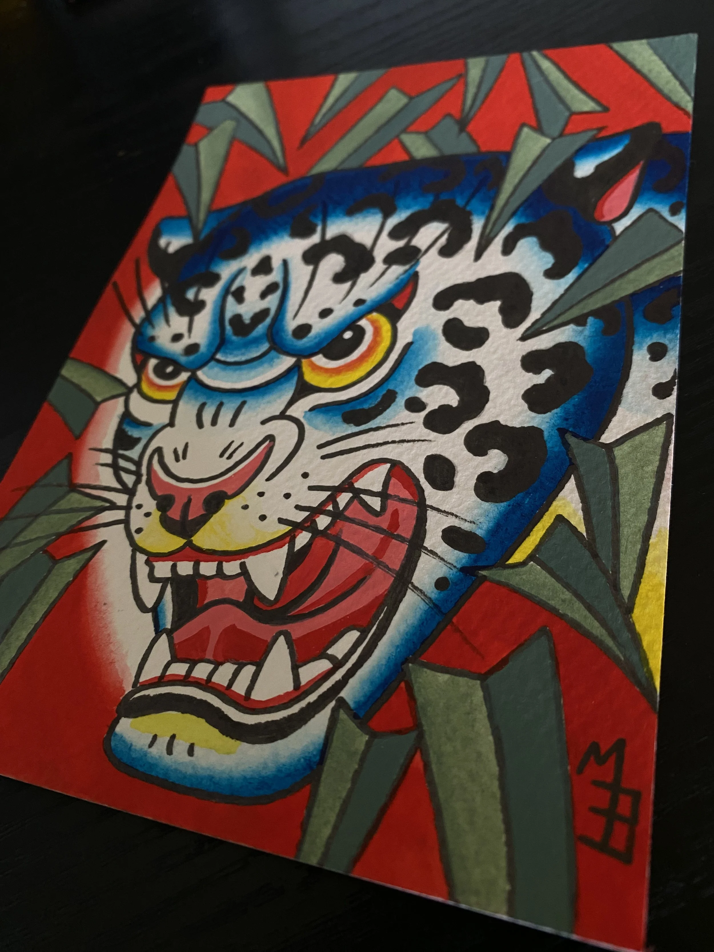 STORE Fudo Cobra Painting $70.00 Reaper Linocut Block Print $20.00 ”Encierro de Toros” Print $25.00 Hannya Block Print $15.00 Sold out “Gojira” Painting $100.00 Blue Leopard Painting $25.00 Sold out NAMAKUBI x ONI Painting $100.00 Sold out “The Burning Question” Painting $60.00 “Trepanning” Painting $40.00 Friday the 13th 2020 Flash Sheet $100.00 Sold out