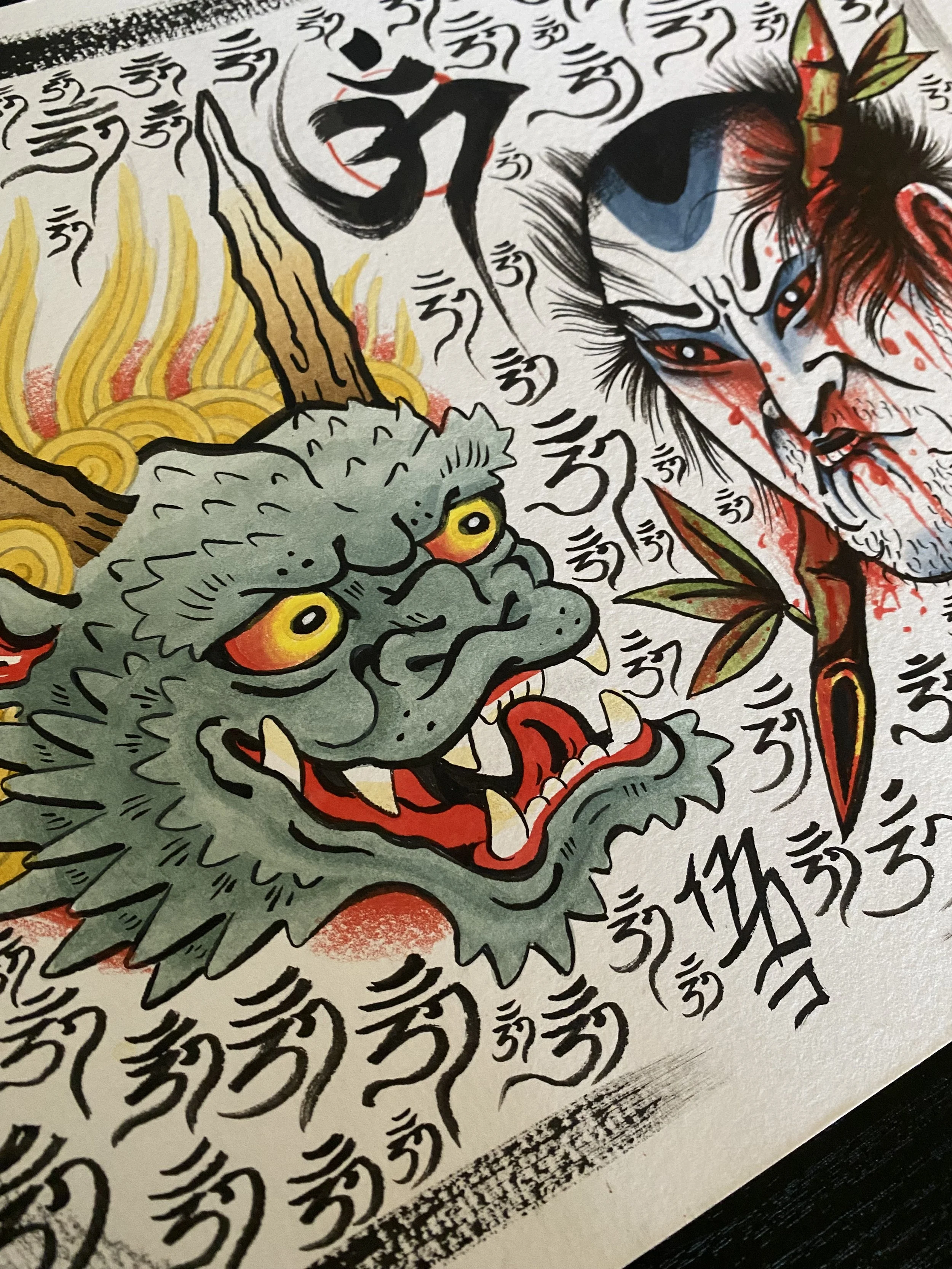 Maybe it’s tattoo flash, maybe it’s just a painting. Meditative art of some gruesome subjects.